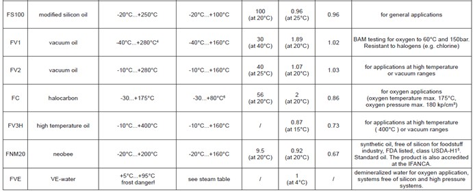 可提一定范圍的物質(zhì)如壓力傳送液體,適用于特殊工作。請參考下表和恰當(dāng)?shù)臄?shù)據(jù),以獲得詳細(xì)信息。